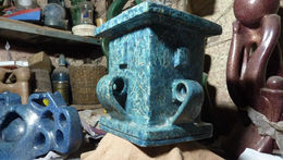 Aunque tengo este torno, la verdad es que no trabajo mucho en el. Mis trabajos son hechos a mano como los de mis ancestros pero se da la oportunidad que tengo este torno de a pie artesanal… practico en él con la greda que está aquí mismo a los pies del Cerro. Realmente yo soy alfarero de mano como los antiguos me gusta hacer los jarrones a lulo o a plaqueta, ese es mi fuerte. Saco el barro y lo dejo reposar en la tina para que decante.-IAM
